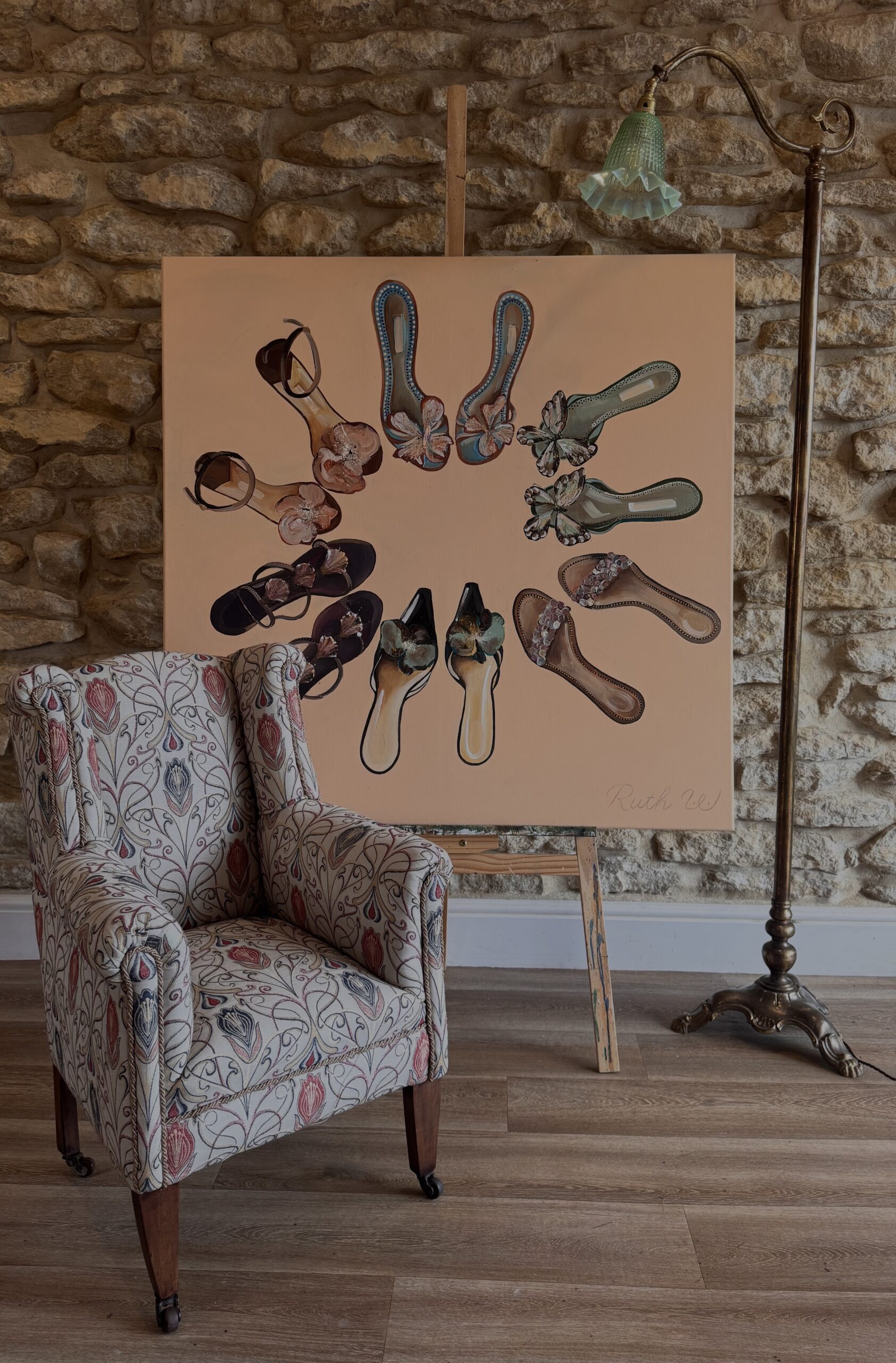 The circle of shoes creates a visual space with no beginning or end, a space where women exist without hierarchy or performance. Each heel represents a fragment of becoming a woman: self-discovery, rage, heartbreak and the slow process of unlearning of internalised misogyny. Removed from the male gaze, the circle of shoes celebrates the intimacy found in female connection, and the act of choosing yourself.