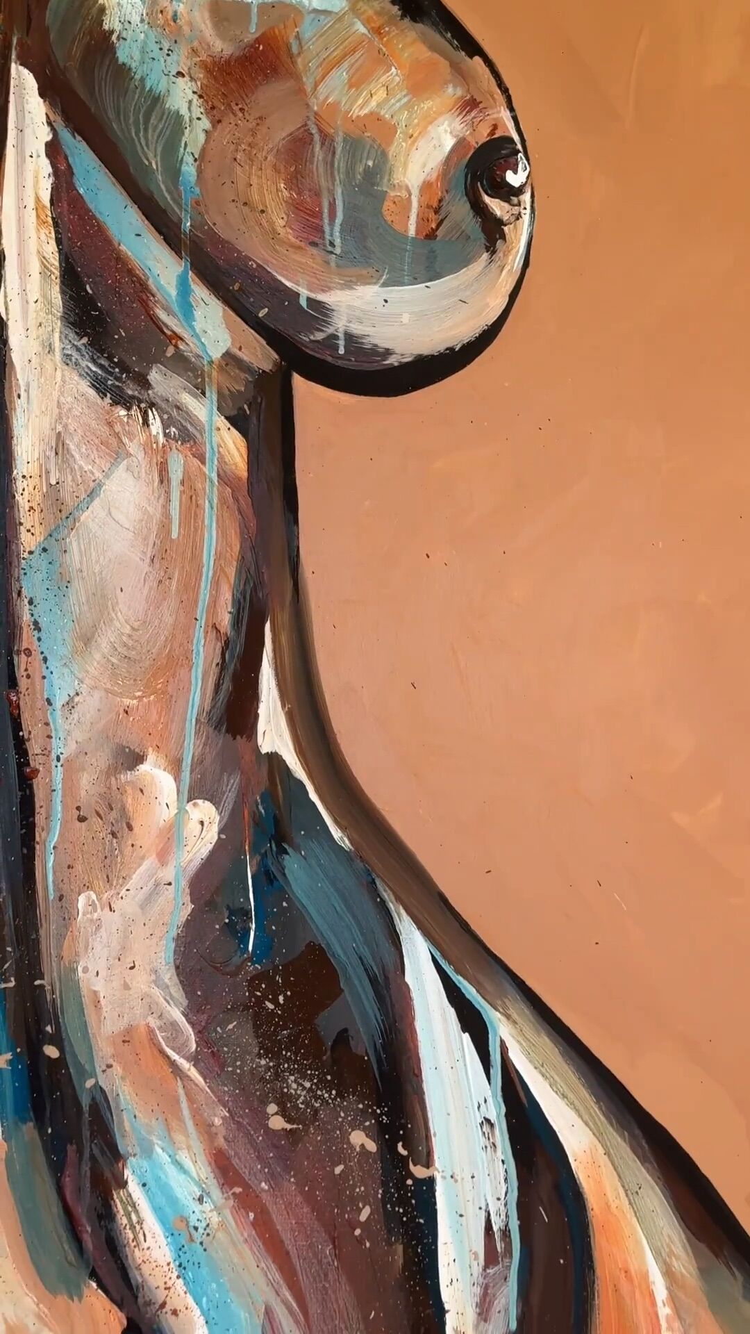 It becomes a record of my rhythm, reflecting my internal mood rather than a pursuit of perfection. Instead of idealising a woman's body or designing it to be "perfect", this painting embraces the reality of sometimes feeling confident and other times feeling uncertain and in need of reflection.