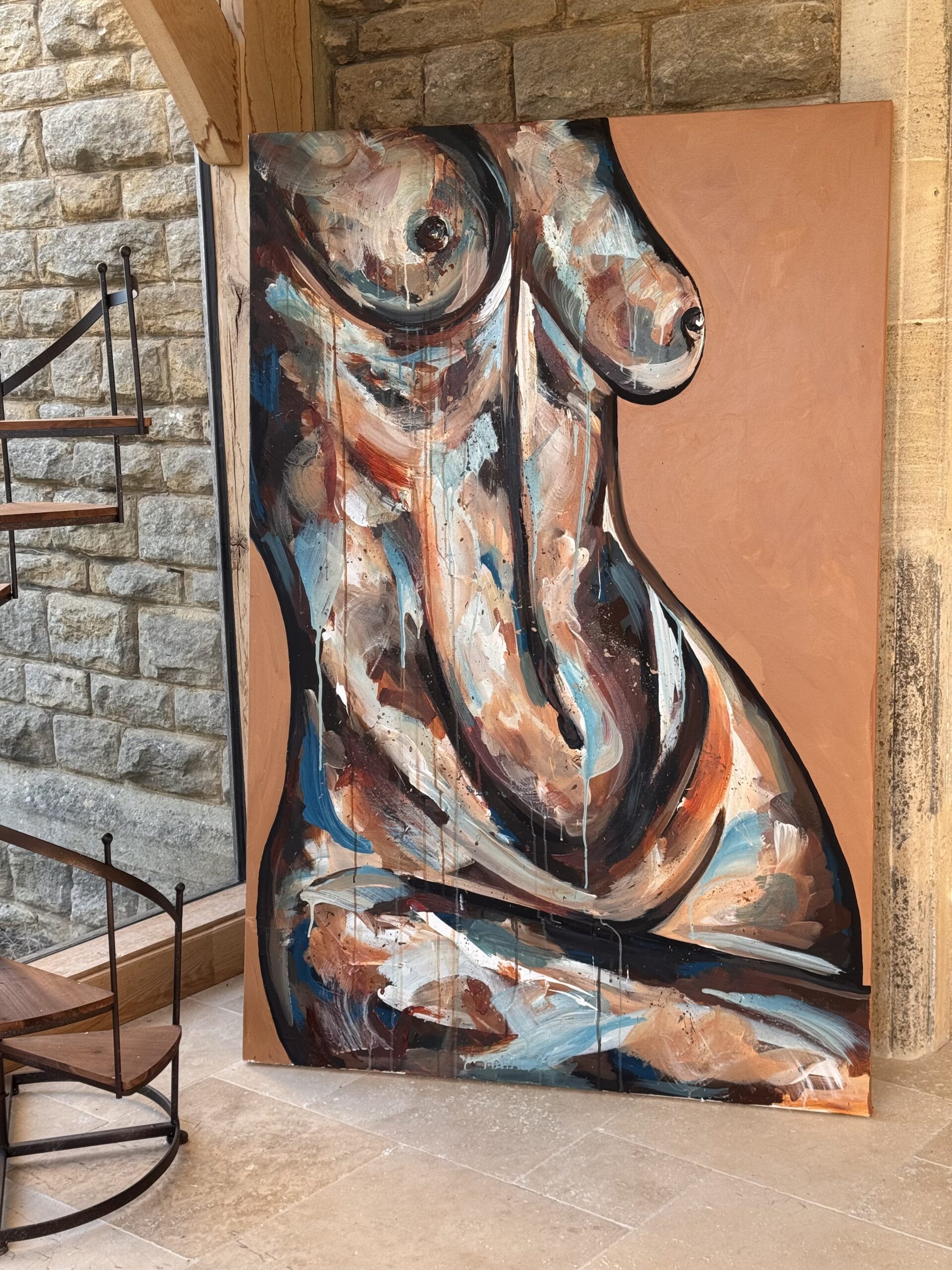 This painting's scale, bold brushstrokes and posture convey strength, confidence and presence. The relaxed parts of the figure reflect the natural ever changing form of the female body across different hormonal phases. The strokes aren't constructed, they are responsive and mimic the flow of energy I experience throughout my cycle.