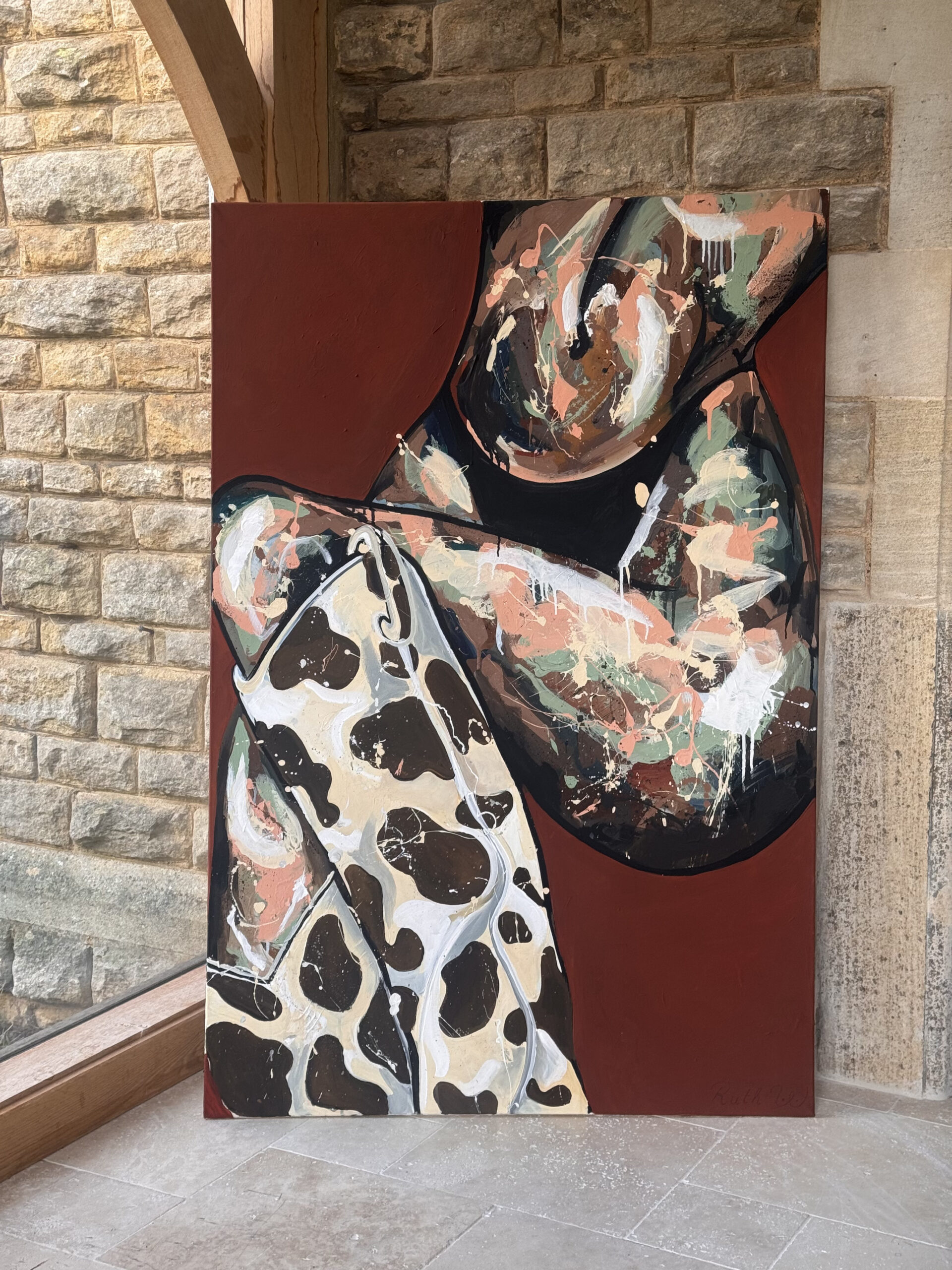 Cowboy boots are a symbol of independence and authority. They grounding the figure in strength and confidence.This work shifts the focus from the filtered external male gaze to focus more on presence, where power is embodied rather than performed.