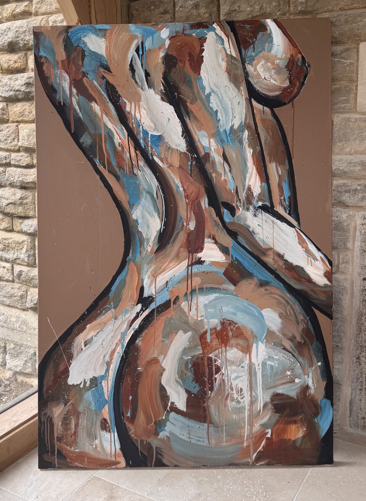 The healing process is also somatic: it is a physical process not just a mental one. The body stores what was never spoken, things we didn’t know how to name or maybe weren’t allowed to express. This painting highlights the limitations of language in processing trauma after intimacy. It emphasises how painting becomes a non verbal form of expression, portraying what the body already knows. This painting is filled with compassion, the slow return to feeling after scanning for safety.