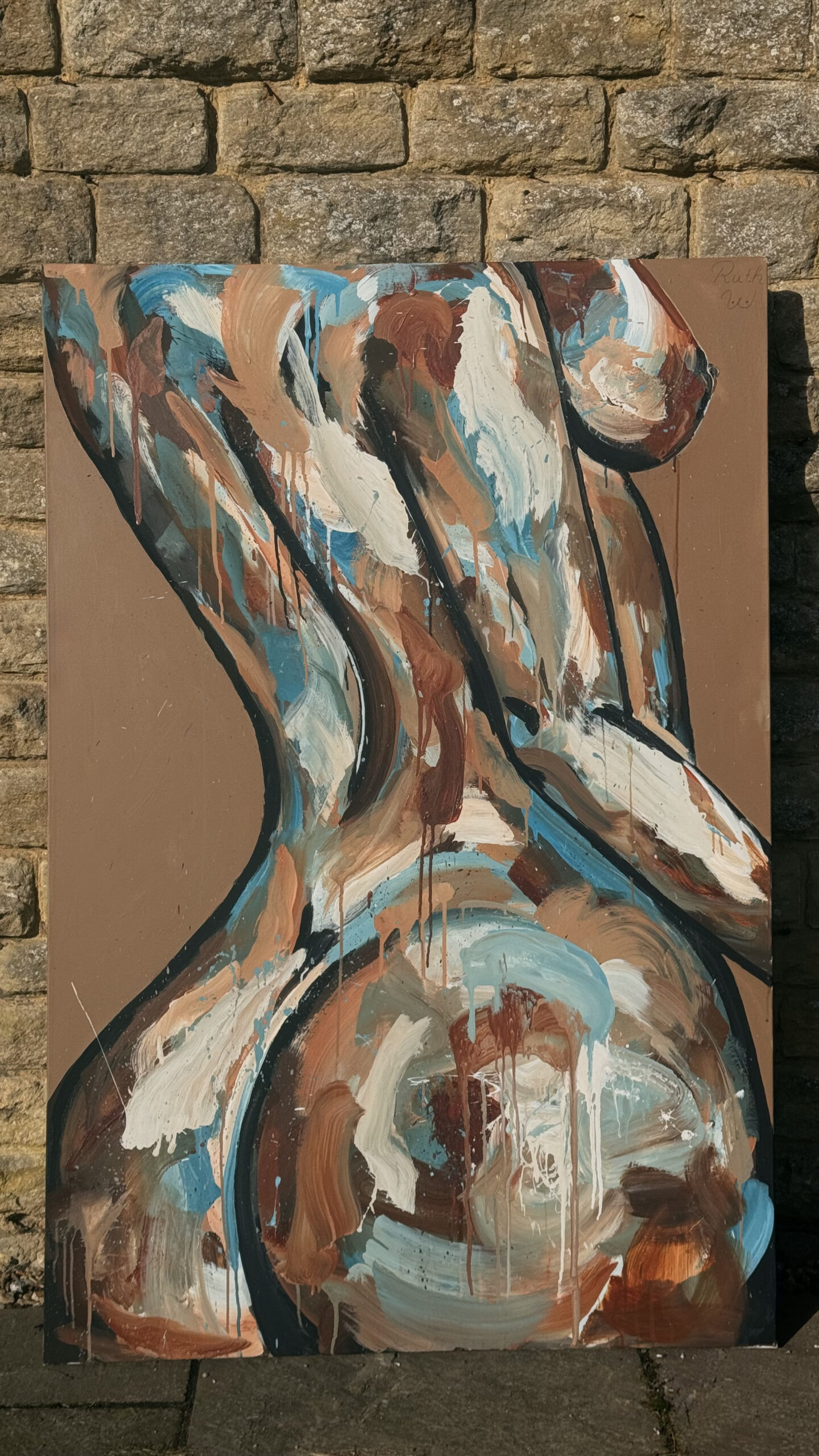 This piece became a way for me to understand my body on deeper levels: biologically, psychologically and emotionally. The more I paint figurative pieces the more I start to recognise the patterns I was never taught: survival responses, hormones, learned performance, silence, panic and memory. When I paint it feels like I am having a conversation with my body. Through this process, I began to recognise my own trauma responses, vagus nerve signalling, attachment patterns and somatic imprints.
